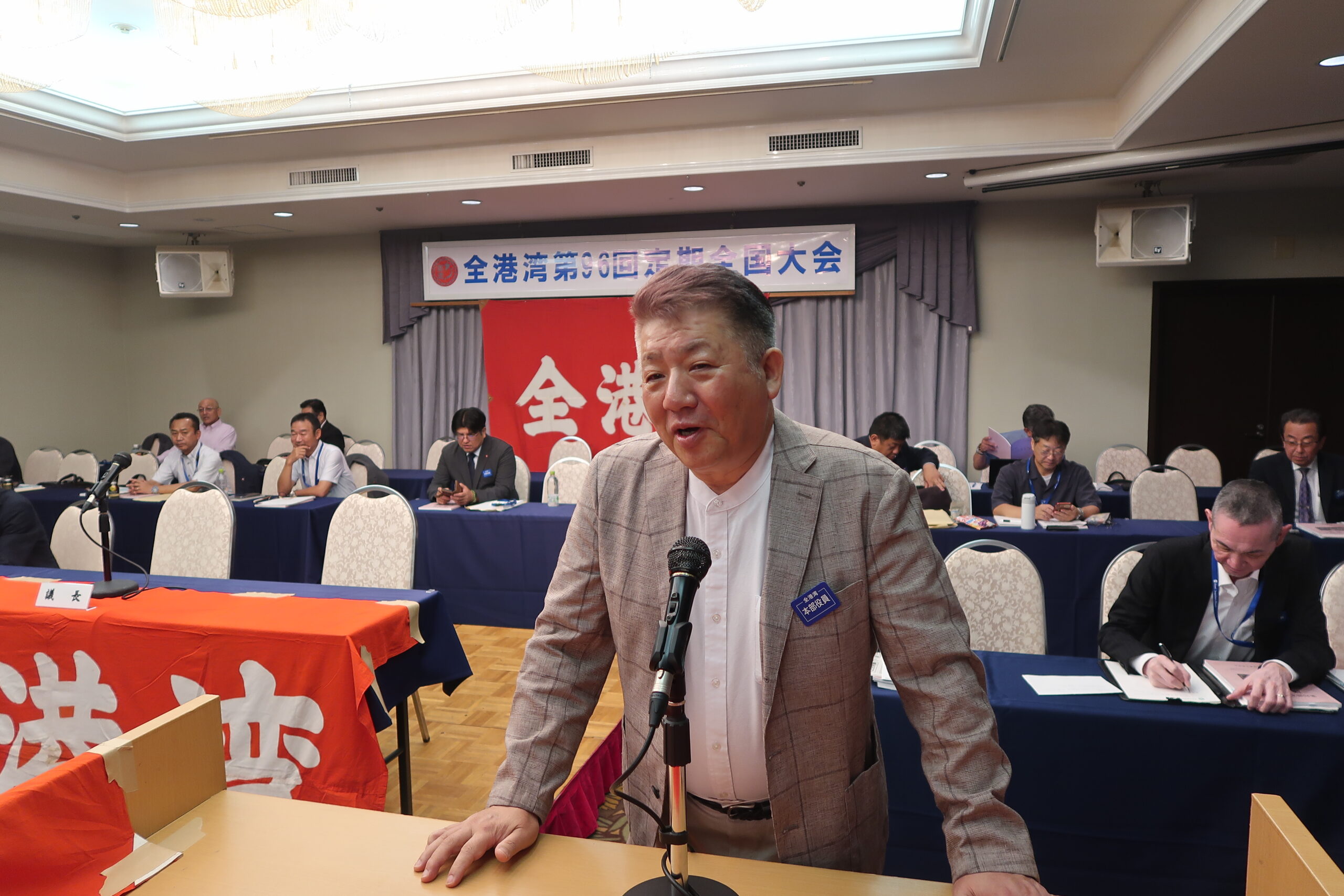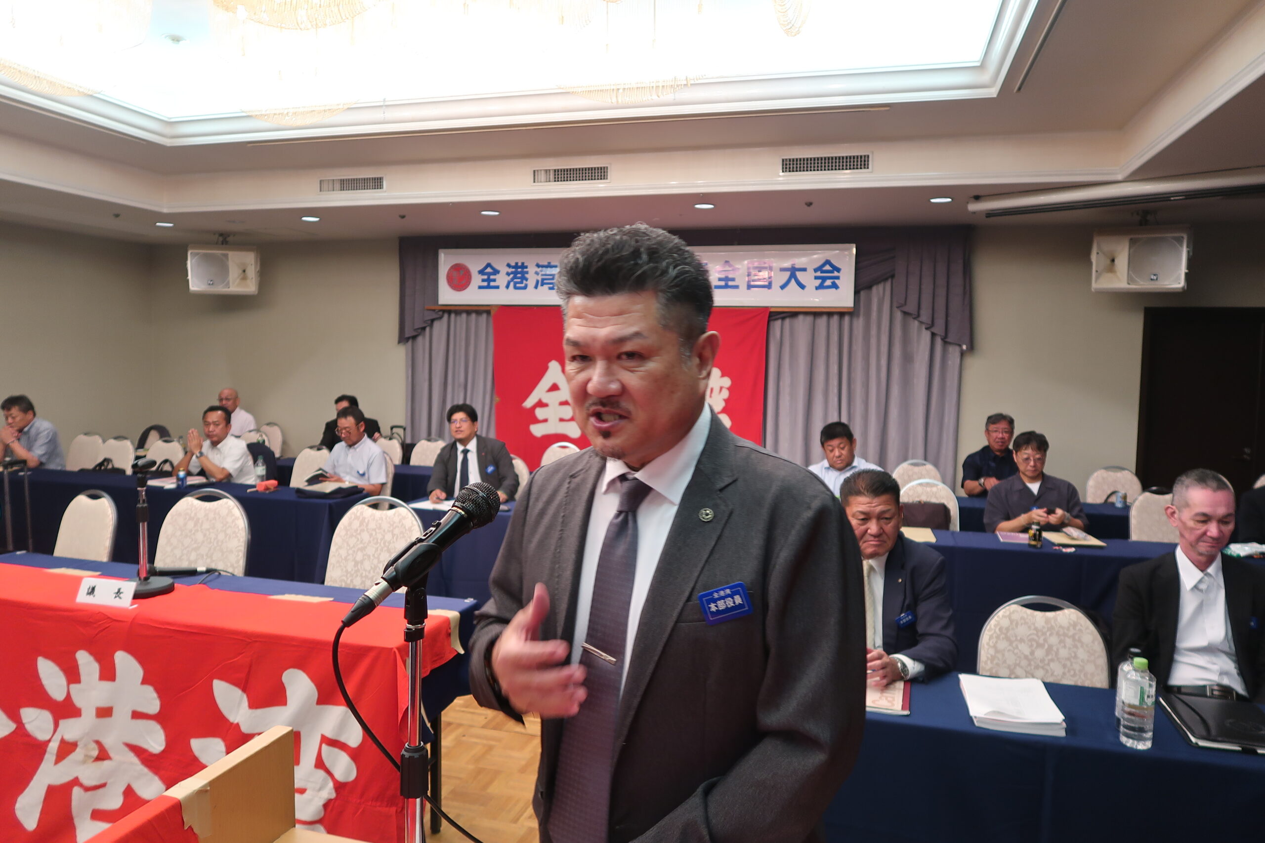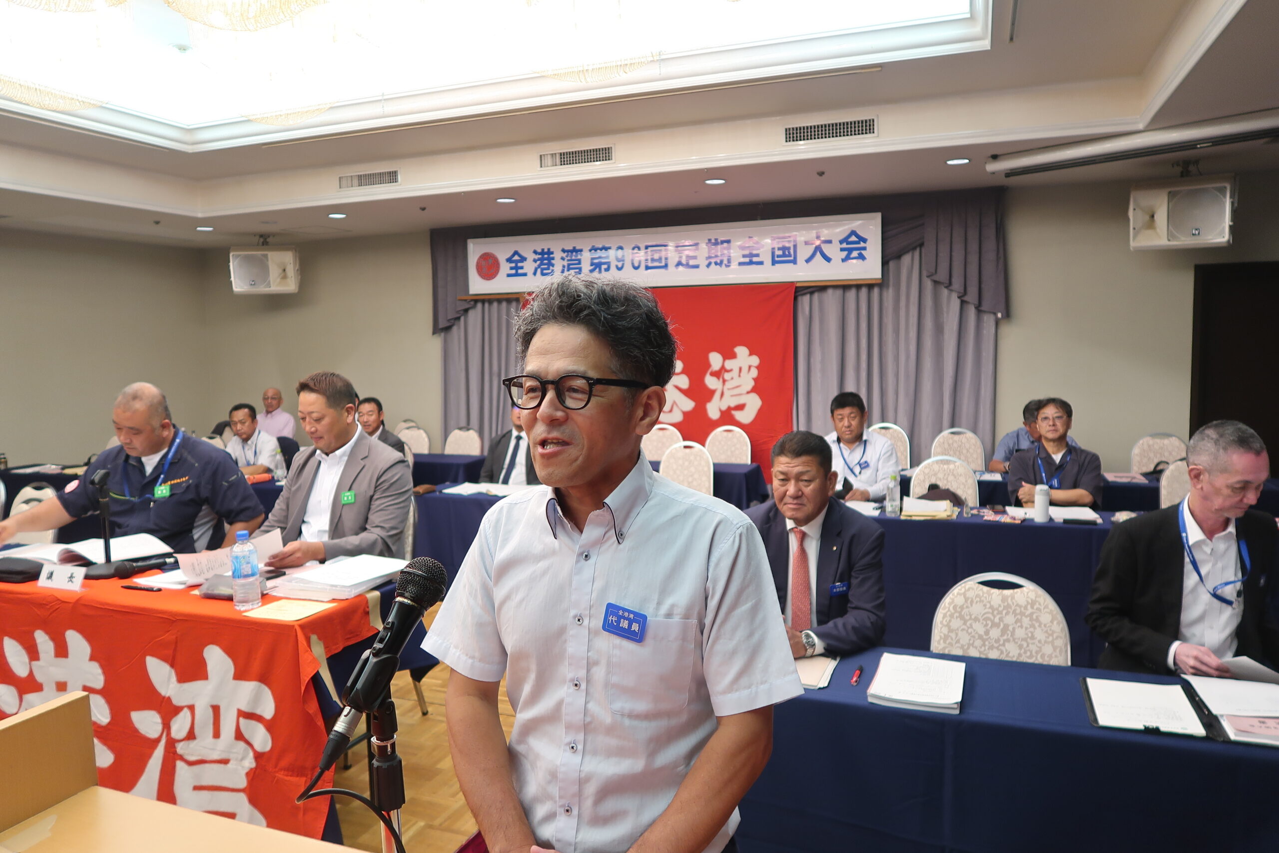 それから討議の中で、松永書記長、丁寧に答弁をしていただきました。執行部としてなんの齟齬もない答弁がされておりますので、松永書記長の答弁がそのものであるということを申し上げておきたいと思います。その上でですね、私、大会の冒頭の挨拶をさせていただいたのは、1つ1つの課題や、平和のと言いますか、先の戦争が終わって80年、その80年後の今が二度と過ちを繰り返さないとやってきた、我々の先輩たち、日本国民の気持ちとちょっと逆行しているようなところがあるという、すごく危機感を持った話をさせていただいたつもりであります。そういうことの議論の中で、やっぱり特定利用港湾等も発言も目立ち、とてもそういうきな臭い方向で、平和にもなりづらいというお話もあったというふうに思っています。そんなところでこの大会で意思確認と言いますか、共有できたというふうに思っております。