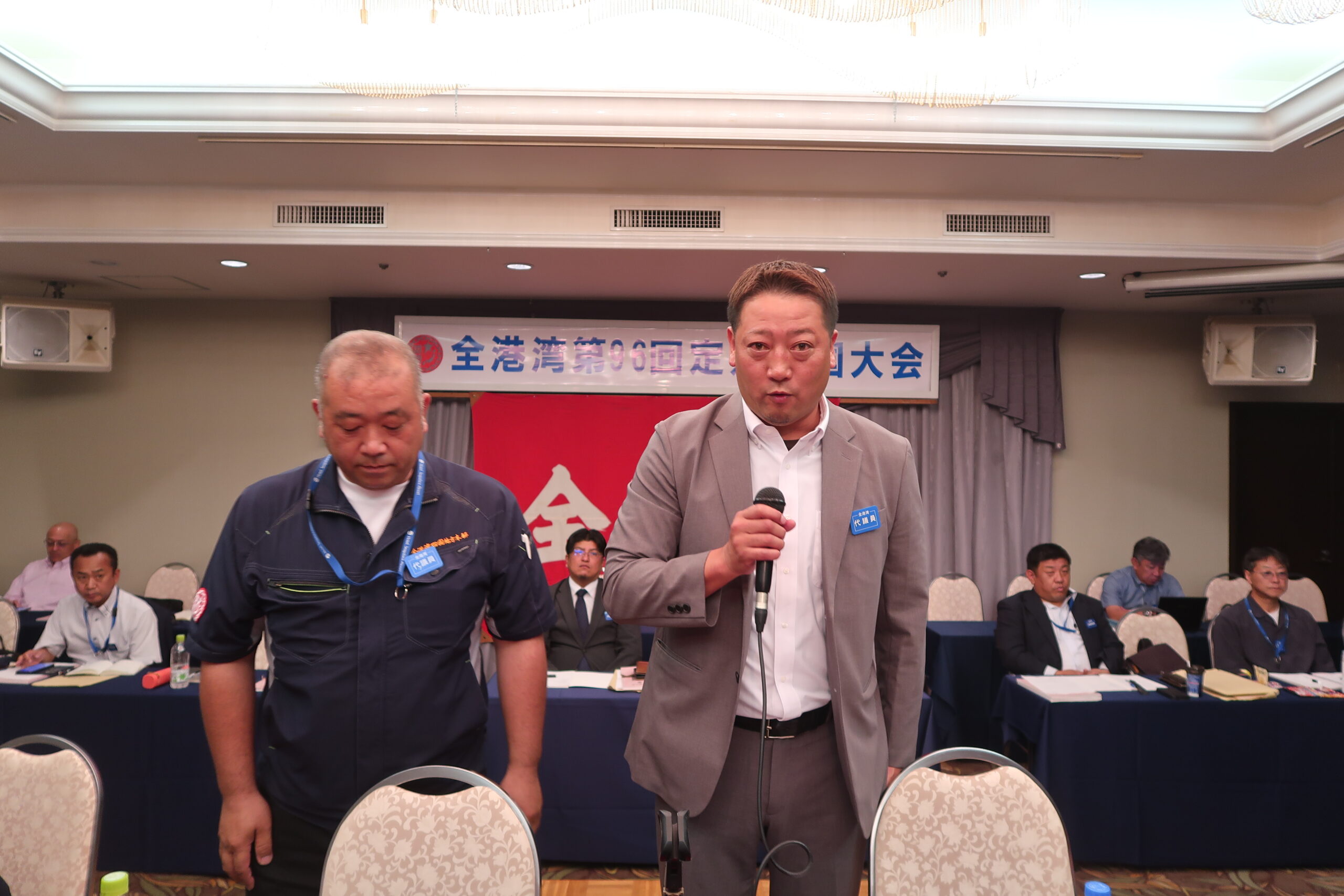 また、役員改選については、4役では沖原副委員長(検数労連)が退任となり、新たに瀬戸副委員長(検数労連)が選出された。糸谷委員長(日港労連)、松本副委員長(全港湾)、柏木副委員長(日港労連)、遠藤副委員長(検定労連)、玉田書記長(全国港湾)、市川書記次長(検定労連)については引き続き再任された。中執では西牟田中執(全倉運)、岩崎中執(全倉運)、金月中執(全日通)が退任となり、柳野中執(全倉運)、瀬川中執(全倉運)、高野中執(全日通)が選出された。