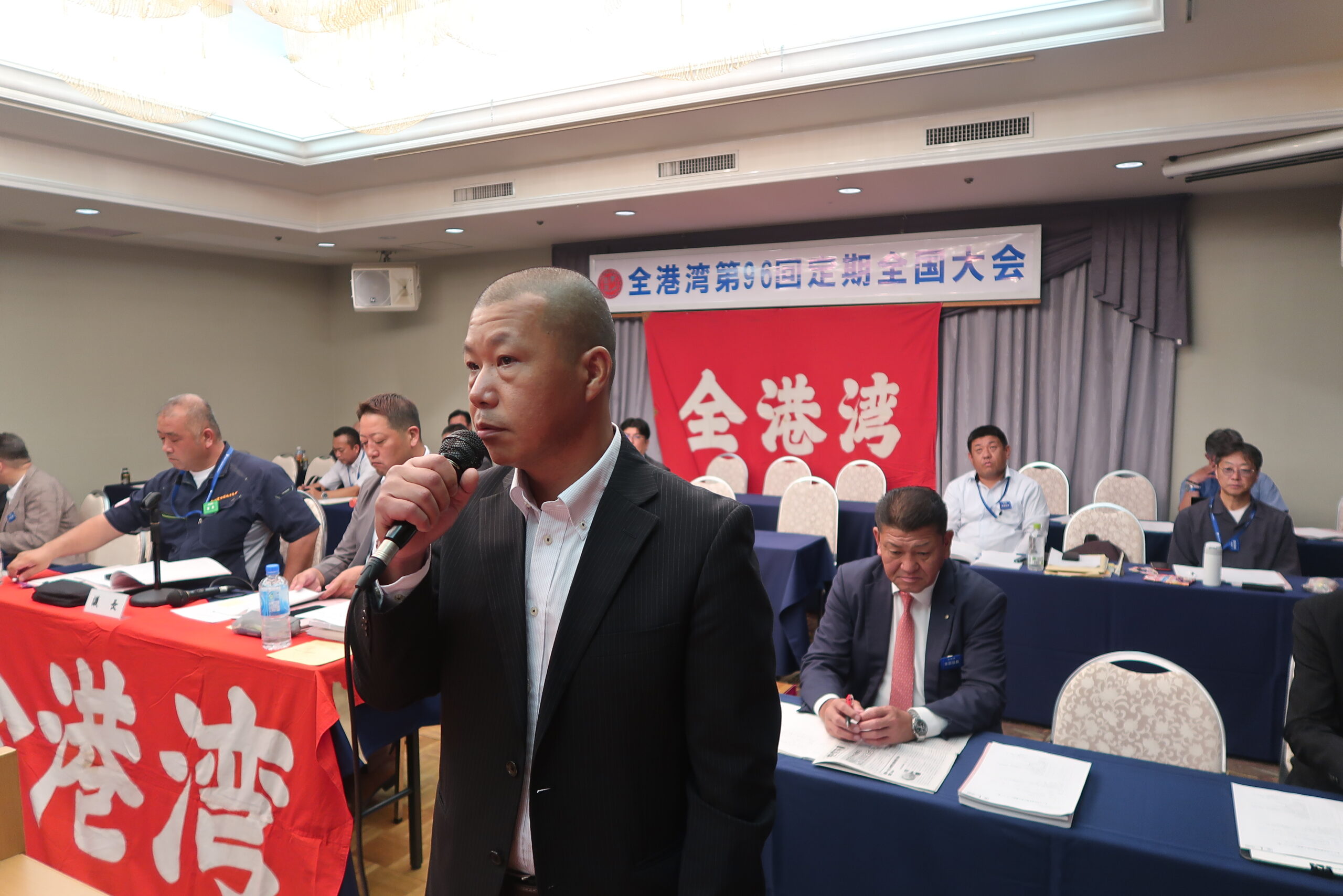 9月13日、14日、シーパレスにおいて全国港湾第10回定期大会が開催された。大会にはオブザーバーを含めて280名が出席、全港湾からは54名が出席した。来賓には港運同盟、ITF東京事務所、全労済が出席、大会議長団は橋崎代議員(全港湾)と秋谷代議員(検定労連)が務めた。議題については討議の結果、満場一致で可決、運動方針を確立した。