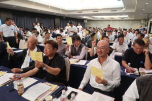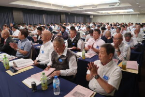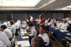 全日本港湾労働組合の第96回定期全国大会を、9月11日、12日の2日間、ホテルシーパレスリゾートにて開催した。全国から大会代議員88名、中央本部役員17名、傍聴者を含め194名が出席、議長団は竹田英弘代議員(四国)、松本大輔代議員(九州)が務めた。