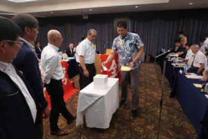 1月23日から24日にかけて全港湾の第38回中央委員会をシーパレスで開催した。総勢145名が参加し、議長団に九州地方の法本中央委員、沖縄地方の清武中央委員を選出、熱心な議論をおこなった。