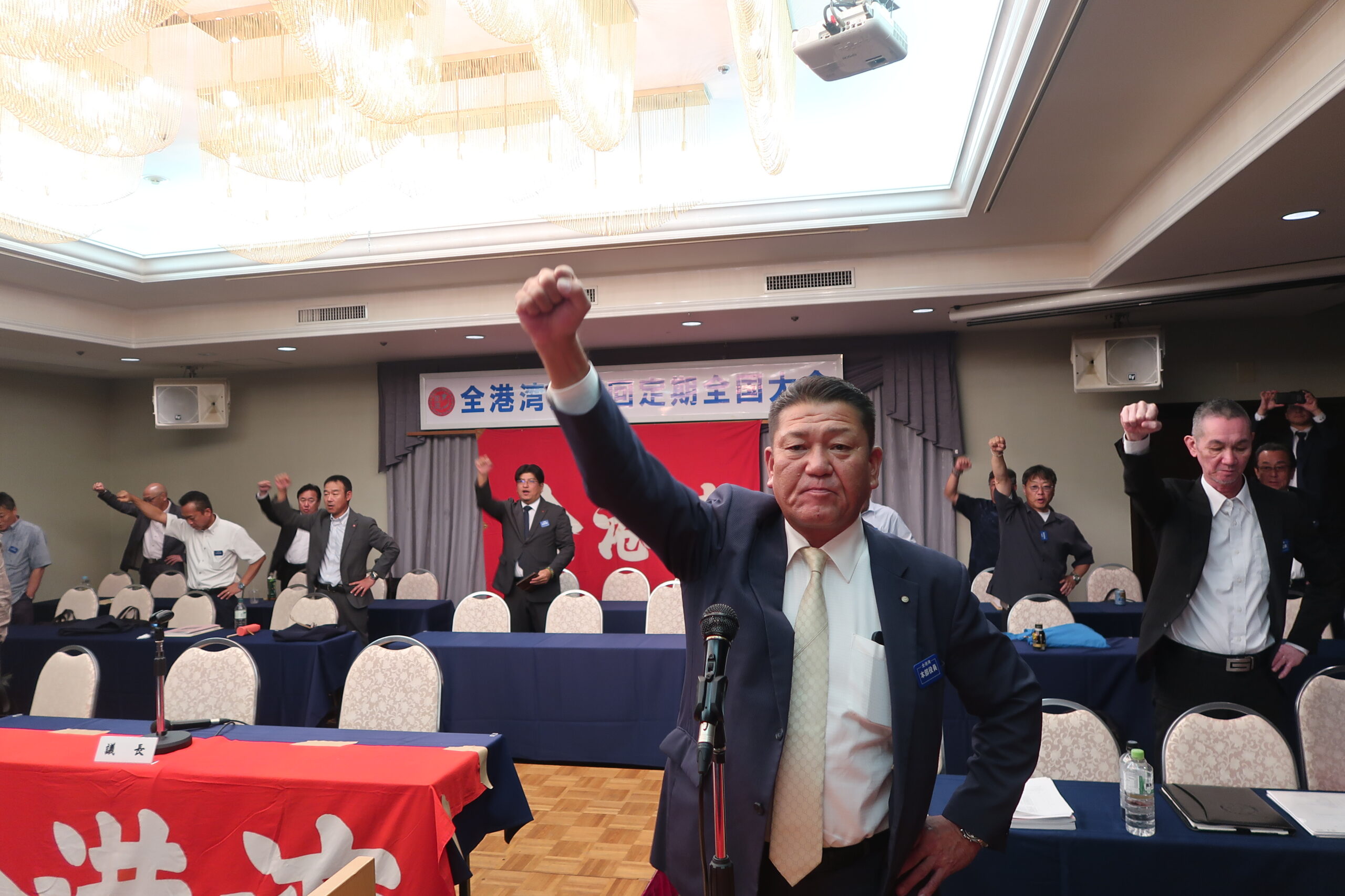 そのことをもって、昨年、確認をしました、方針を今年、この96回大会で万全とした補強がなされたというふうに確信を持っておりますので、来年の80周年大会、記念大会であります、97回の大会に向けて、全港湾、全国一丸となって、中央、地方、支部一丸となってたたかいを進めて、来年の80周年を迎えたいというふうに思います。